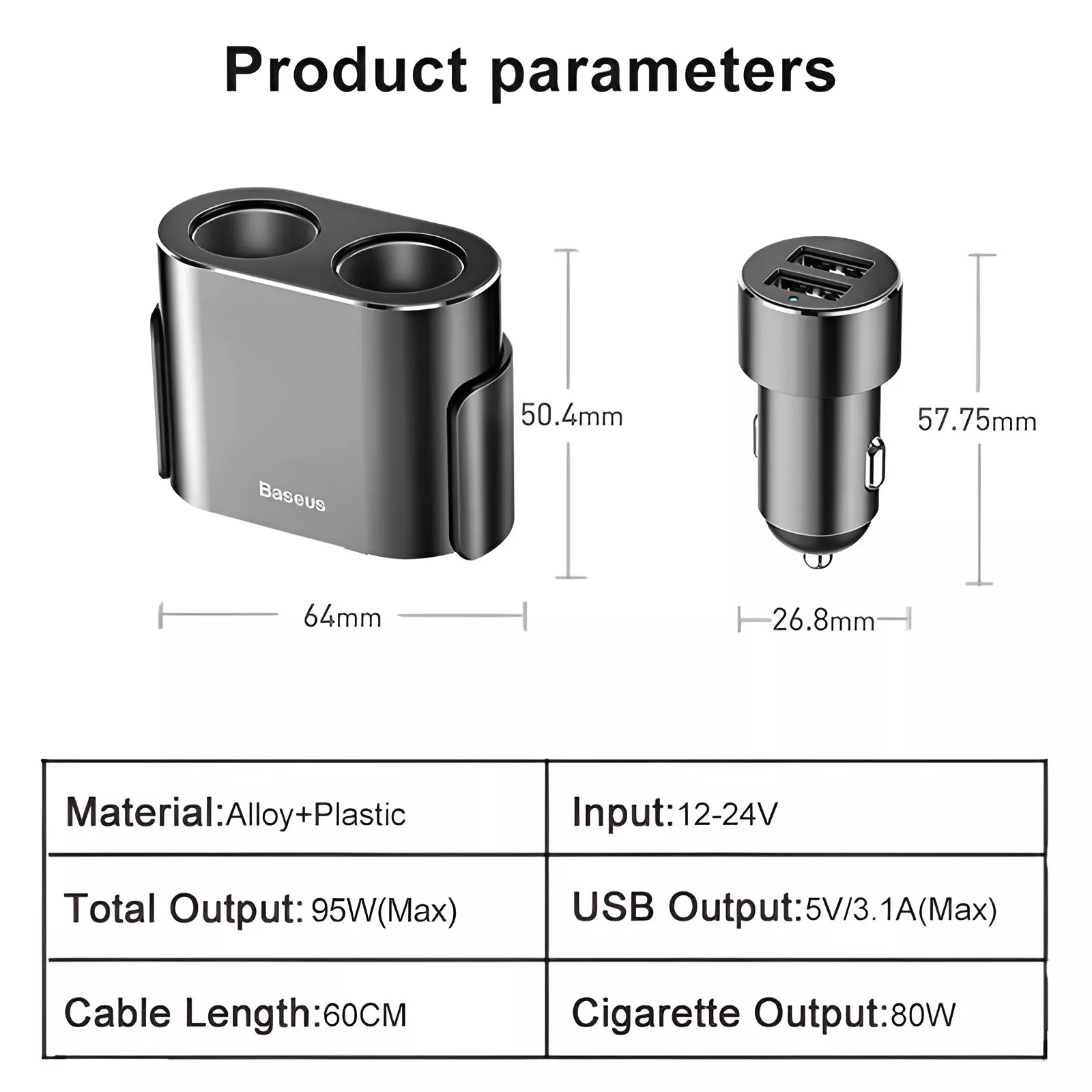 Keep every essential device running, no matter where the road takes you. This all-in-one car power splitter combines dual USB charging and two cigarette lighter sockets in a single, compact hub. Built from full metal with a smooth matte finish, it not only performs at high power but also looks premium inside your vehicle. Whether you’re commuting to work or heading out on a long road trip, this is the simple upgrade your dashboard needs.