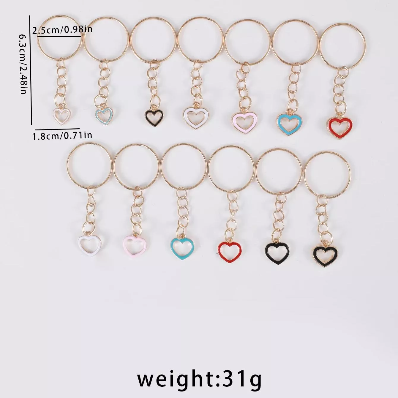 Add a touch of charm and color to your everyday accessories with this delightful 13pcs Candy Color Heart Keychain Set. Each keyring is beautifully designed in soft peach tones and made with high-quality zinc alloy for a glossy, durable finish. The romantic heart shape and gold-tone detailing give it a playful yet elegant appeal, perfect for adding personality to your bags, keys, or backpacks.