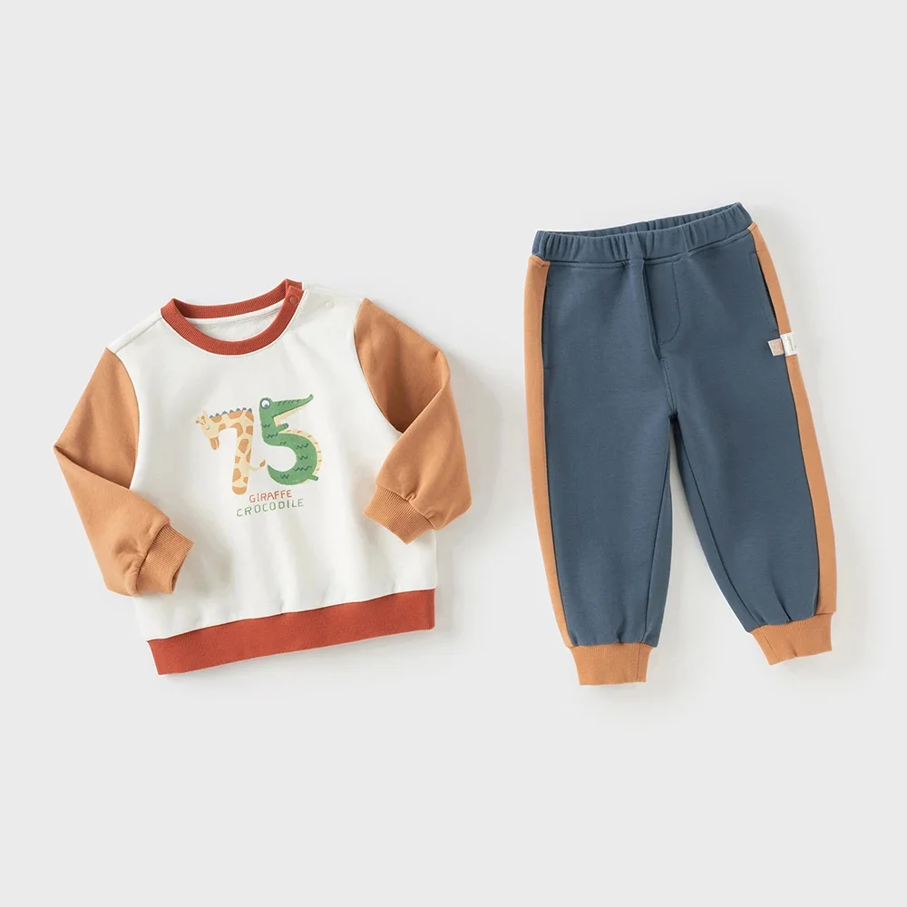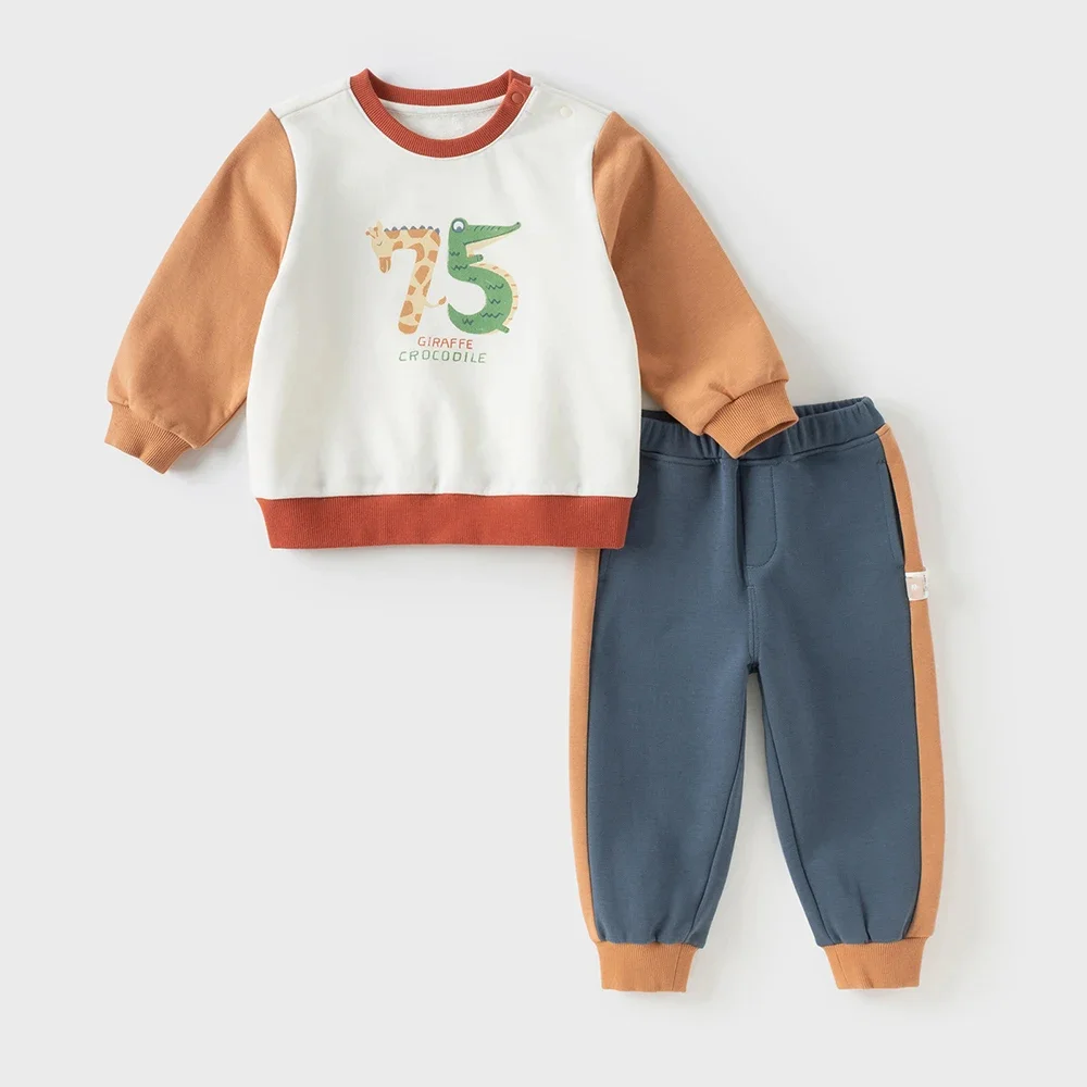 Crafted with care, this set combines high-quality cotton with durable polyester for a soft and resilient feel. The sweatshirt features an O-neck collar and full-length sleeves for extra warmth, while the trousers offer a comfortable fit that stays true to size. The knit construction adds gentle stretch, and the ribbed trims—made with a touch of spandex—help maintain shape wear after wear. Designed for boys ages 4–6 years, this outfit provides just the right thickness for the autumn season.