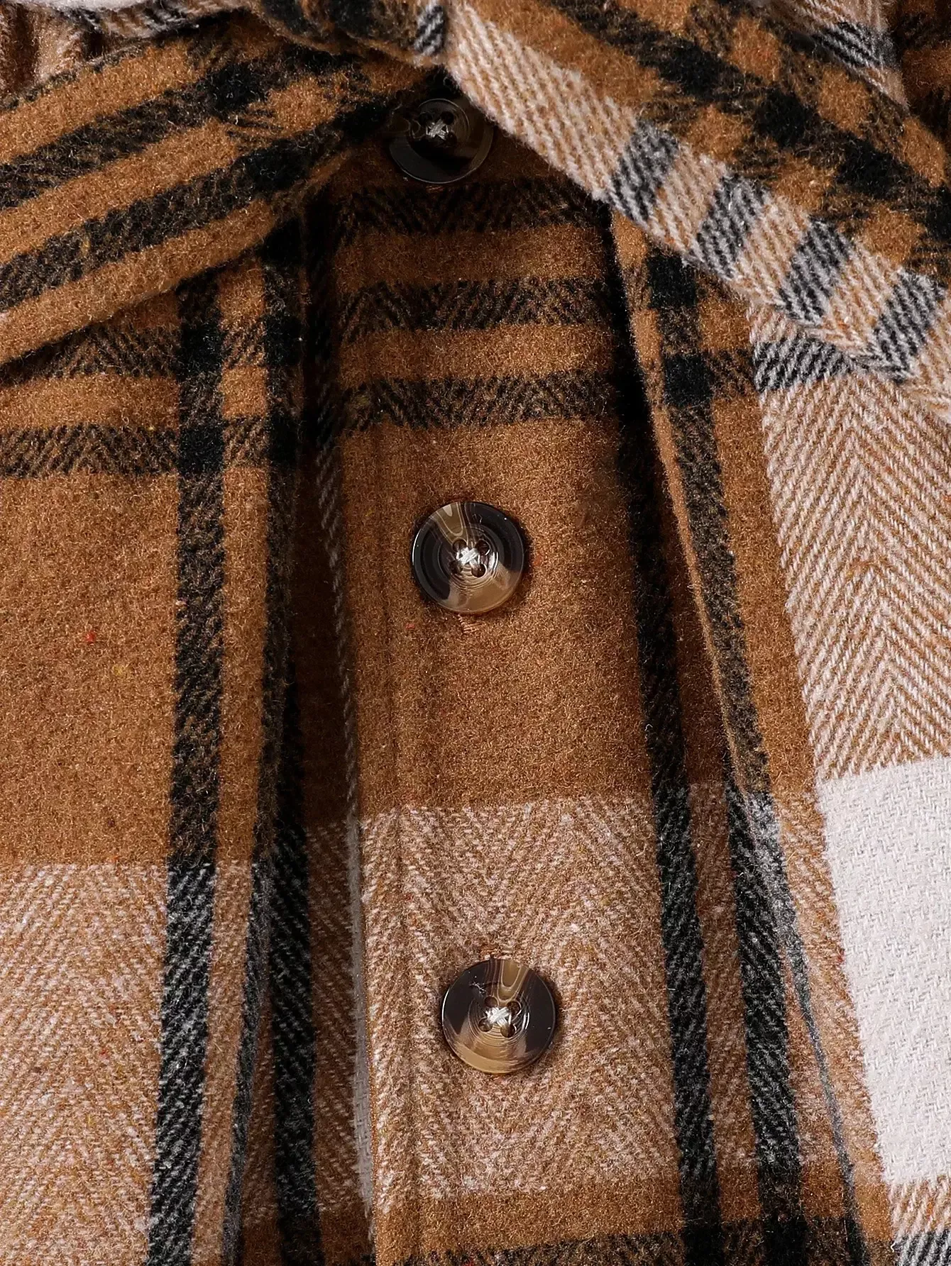 - Design: Classic plaid pattern with a turn-down lapel collar