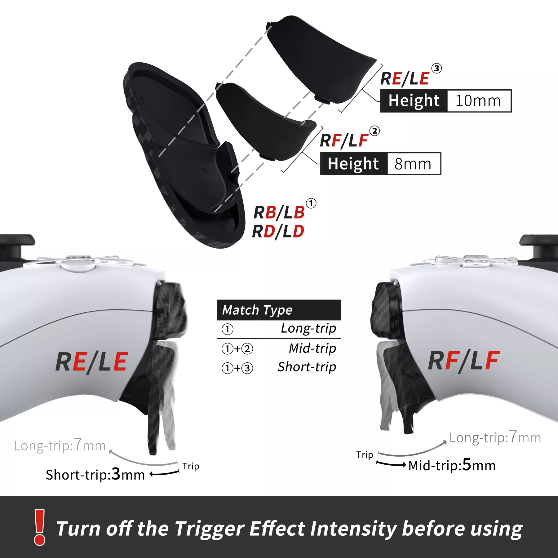 The ergonomic extenders give your fingers more comfort and better reach, helping to reduce fatigue in your thumb, wrist, and hand during longer sessions. The custom trigger stopper enhances motion control and boosts shooting speed while delivering better accuracy and preventing over-shooting. For best results, simply turn off your controller’s trigger effect intensity before use. Installation requires adhesive, and for optimal stability, allow 24 hours before playing.
