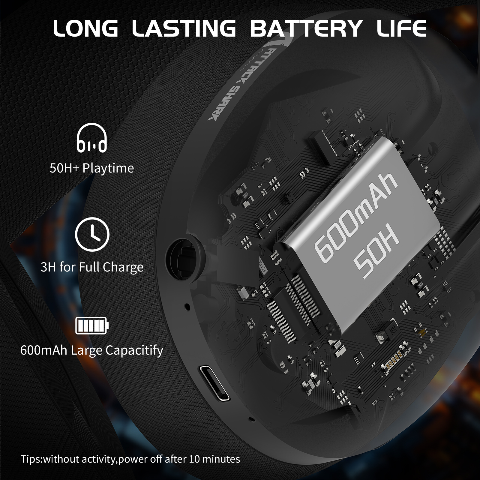 With its built-in 600 mAh battery, you can keep going for hours—up to 50 hours in wireless mode and up to 200 hours with Bluetooth at moderate volume. A smart power-saving feature turns the headset off automatically after 3 minutes of silence when using 2.4G, helping you conserve energy without even thinking about it.