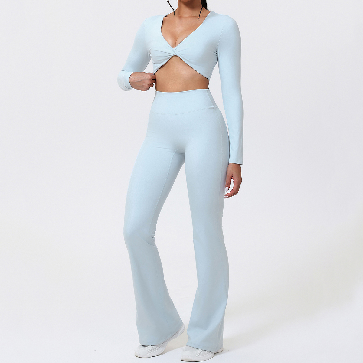 Created for fall and winter use, the long-sleeved top and matching bottoms offer light warmth while maintaining excellent breathability. The moisture-wicking fabric draws sweat away from your skin, helping it dry quickly so you stay fresh during cycling, pilates, fitness training, and even casual wear. Its solid-color design and sleek silhouette make it easy to pair with your favorite sneakers or outerwear.